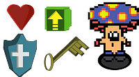 Pixel Sprites/ Upgrade Items: I created the pixel sprite and created an animation in blender. This sprite sheet is just of the mushroom walking. I also added some upgrade items that you'd find in game...